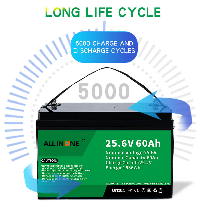 Questa batteria LFP da 25,6 V 60 Ah può essere una perfetta sostituzione della batteria AGM/GEL, ALL IN ONE fornisce anche batterie personalizzate con capacità, dimensioni e funzioni diverse in base alle esigenze specifiche del cliente. Rispetto alle batterie al piombo acido AGM/GEL, le soluzioni di sostituzione ALL IN ONE Li-ion (LiFePO4) presentano i seguenti vantaggi: