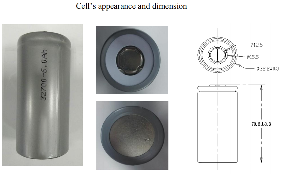 Dimensione cellulare | Diametro: 32,2 ± 0,3 mm, massimo 32,5 mm | Altezza: 70,5 ± 0,3 mm, massimo 70,8 mm |